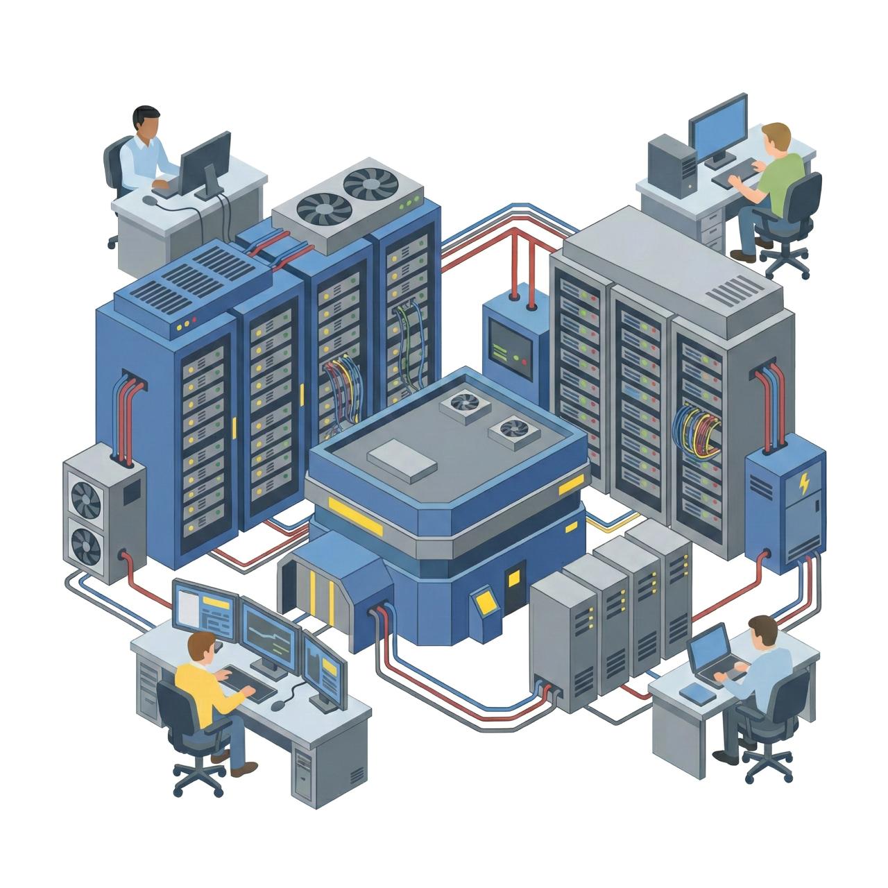 Les data centers sont de grands bâtiments qui regroupent des milliers de serveurs informatiques. Ils stockent, organisent et traitent les données en continu, jour et nuit. Sans eux, il n’y aurait ni cloud, ni plateformes numériques, ni intelligence artificielle.