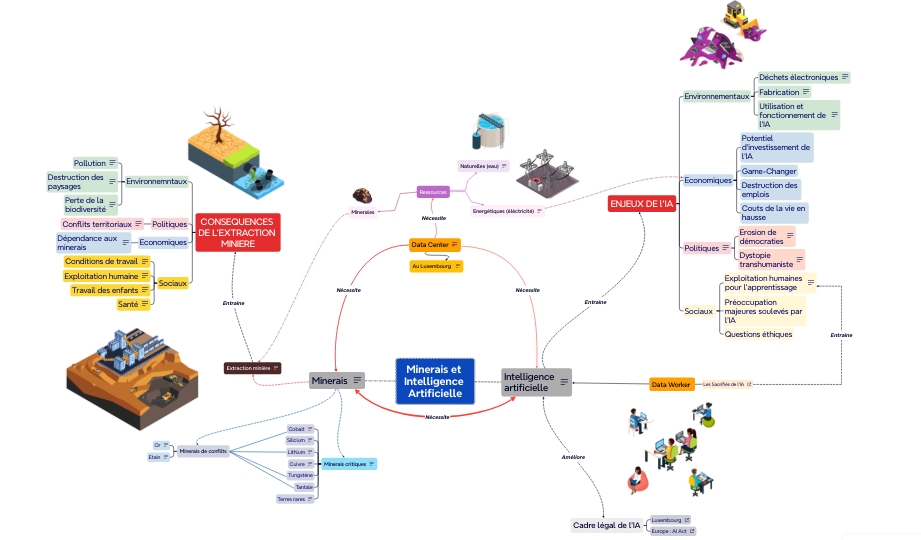 - Construire et présenter une mindmap qui illustre les liens entre minerais, IA et enjeux mondiaux